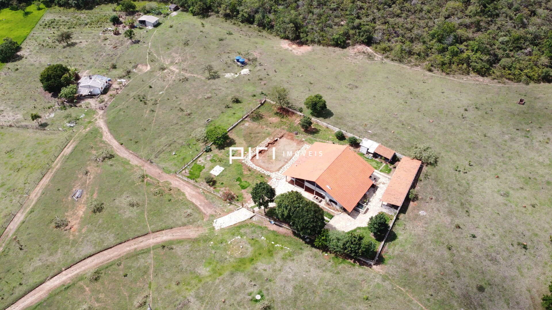O sítio com sua imponente casa está situada num plano no sopé da Serra do Macaco.